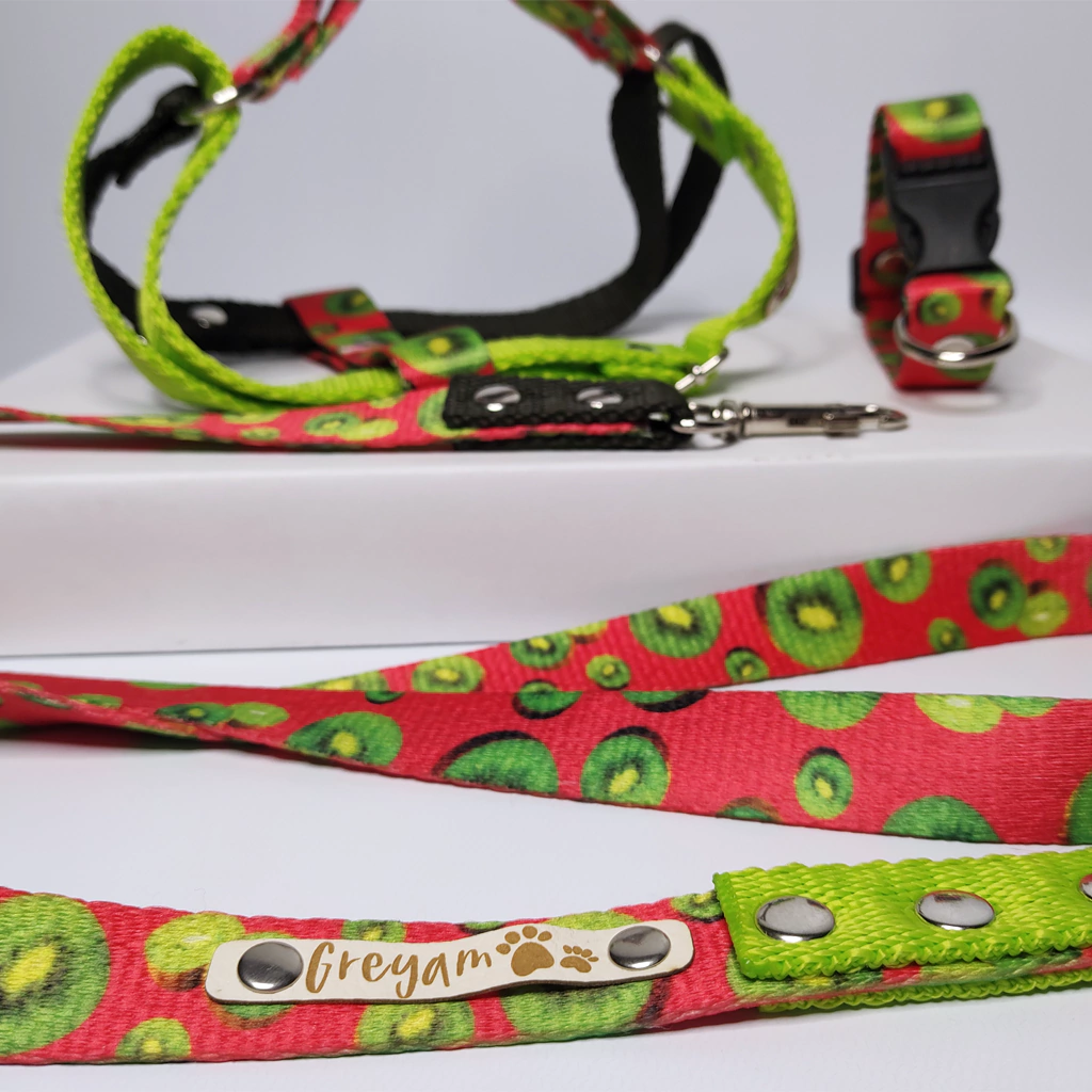 Combo estampado con liso para perros – Collares y correas personalizadas