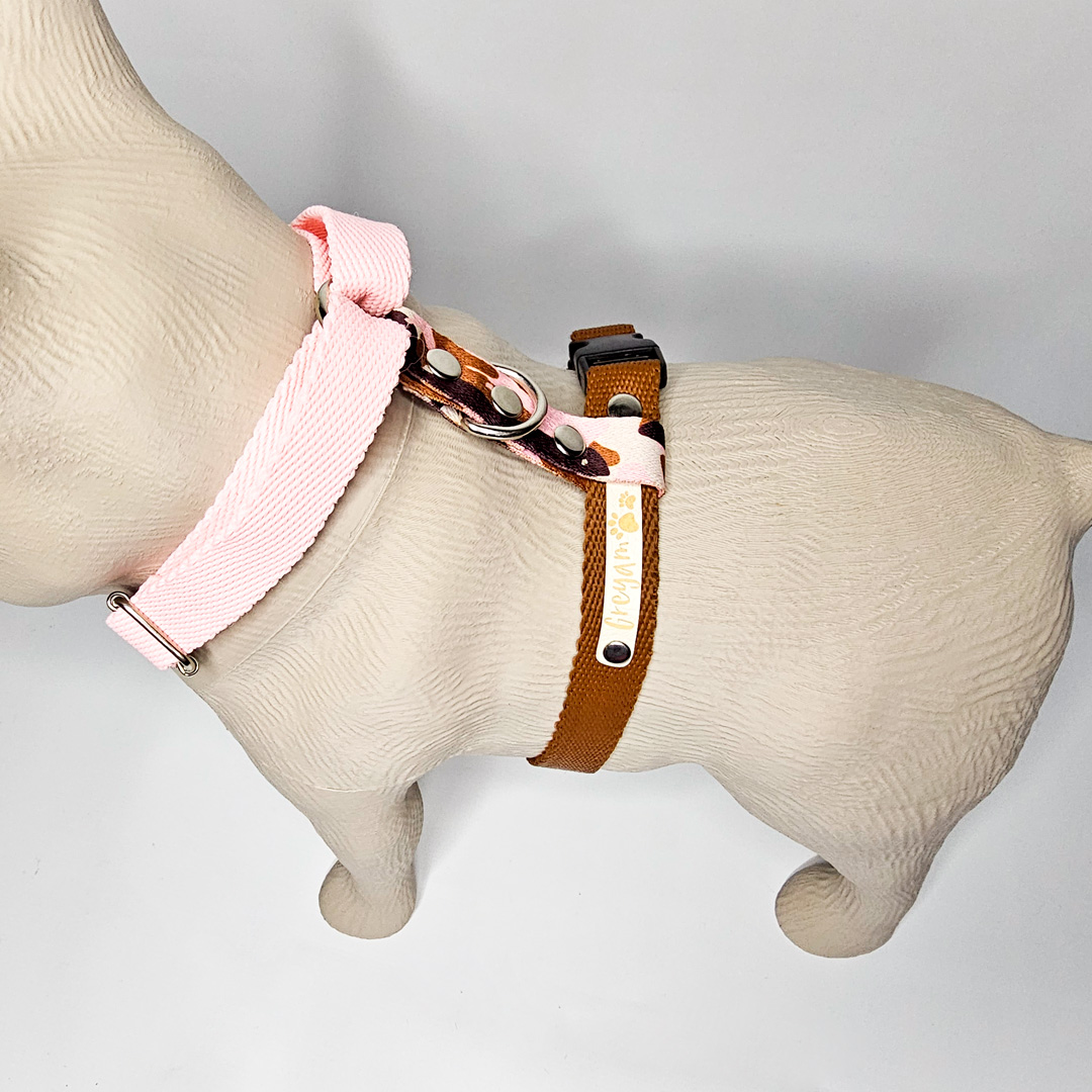 Combo totalmente estampado - sin cinta lisa (el combo se compone de Collar + Pretal + Correa) . Podés elegir con pretal H o pretal dos bandas. Al hacer la compra, en notas, indicar el número de estampado elegido.